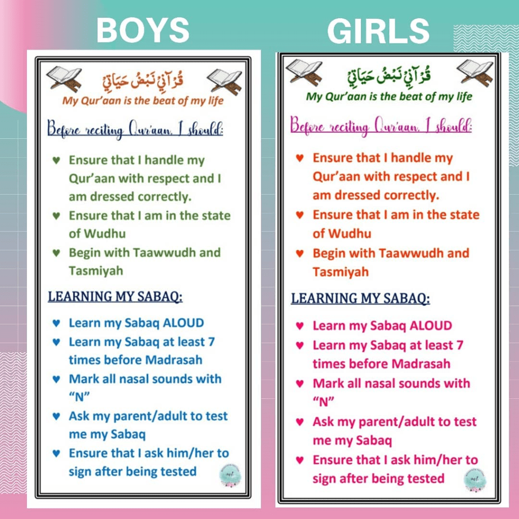 This bookmarker/Qur’ān Shareef Marker can be printed and learners can decorate, colour and personalise also. The back portion can also be decorated with a quote of choice regarding Qur’ān and Deen. Thereafter, laminate it and use daily. 🌺