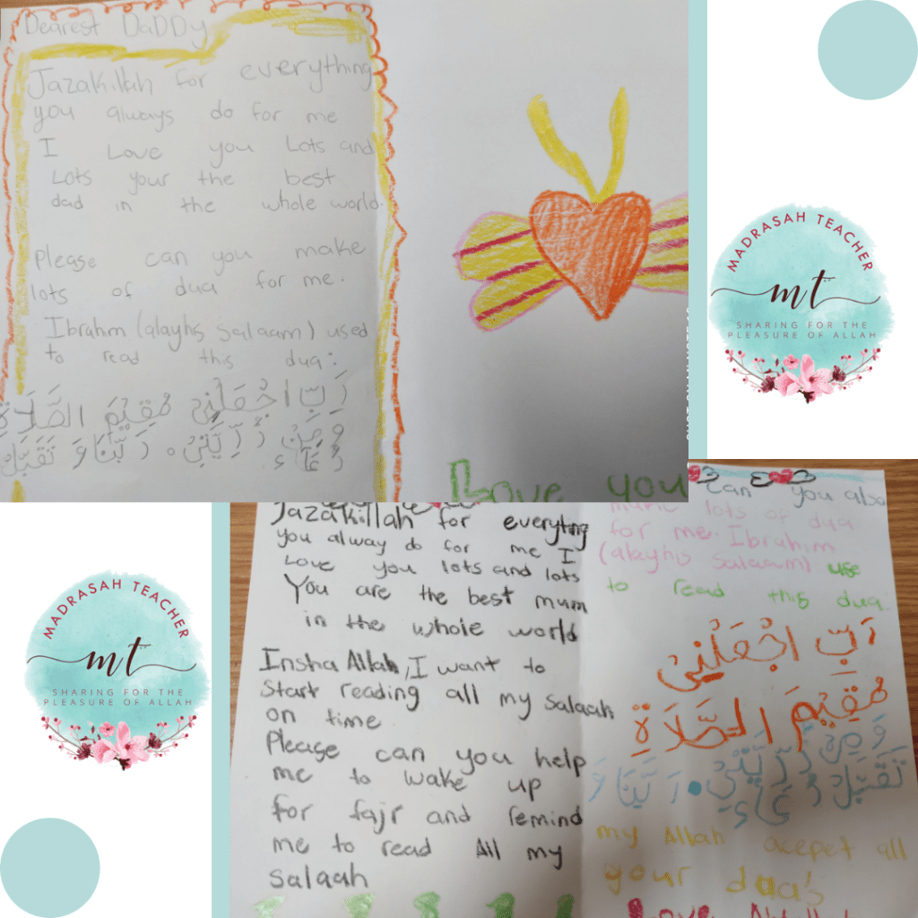 The students coloured and designed these and I laminated them after which, they took it home to use. Alhumdulillah, the feedback after this was great so I decided to share it.