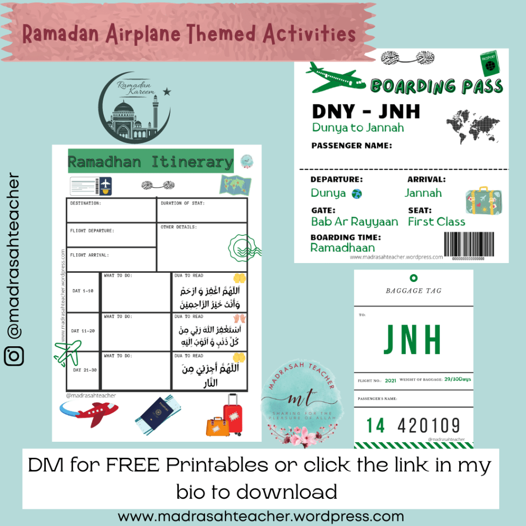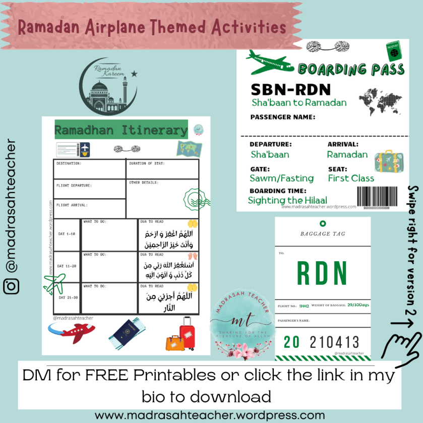 You’ll find the Boarding Pass and Luggage Tag has two styles: The first is Sha’ban to Ramadan and the second is Dunya to Jannah.